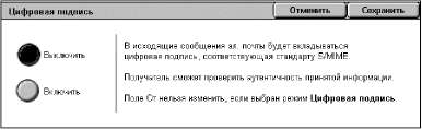 Чтобы использовать данную опцию, необходимо, чтобы адрес электронной почты, заданный для машины, был связан с соответствующим сертификатом. Для получения дополнительной информации обратитесь к главе "Безопасность" руководства системного администратора.