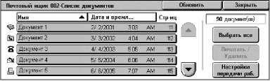 Открывается экран [Общий почтовый ящик], на котором можно проверить статус или удалить сохраненные документы из списка.