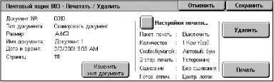 Открывается экран [Почтовый ящик - Настройки печати].