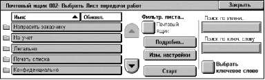 Экран можно отобразить, нажав кнопку <Статус работы> на панели управления, а затем выбрав [Работы защ. печати и др.] > [Общий почтовый ящик].