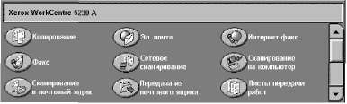 Значок [Факс] на экране "Все режимы" означает режим "Факс" или "Факс-сервер", в зависимости от того, какой режим отправки факса задан в режиме администрирования системы.