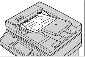 При использовании автоподатчика машина может сканировать оригиналы разного формата. Выровняйте оригиналы по внутреннему углу податчика и включите режим [Оригиналы смешанного формата]. Если в податчик загружены оригиналы пользовательского формата, а функция определения формата на вкладке [Настройка макета] установлена на [Автоопределение], возможно застревание бумаги. В этом случае рекомендуется ввести формат бумаги вручную.