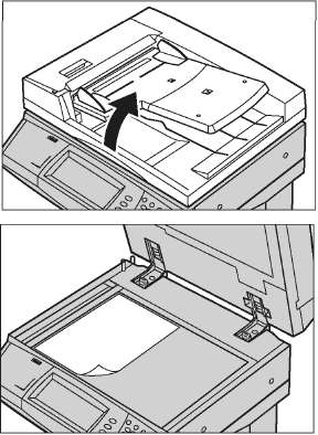 Ниже объясняется как загружать документы с помощью податчика оригиналов или стекла экспонирования.