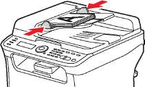 • Устройство подачи документов: удалите скобки и скрепки из страниц и вставьте их лицевой стороной вверх так, чтобы в устройство подачи сначала поступала верхняя кромка листа. Отрегулируйте ограничители бумаги по размеру оригиналов.