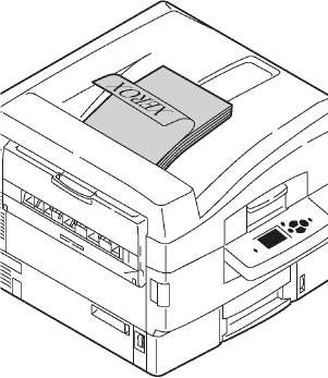 Копии, скрепленные спереди, сзади или с двух сторон, направляются в верхний выходной лоток сшивателя. Копии, скрепленные на сгибе, направляются в нижний выходной лоток сшивателя.