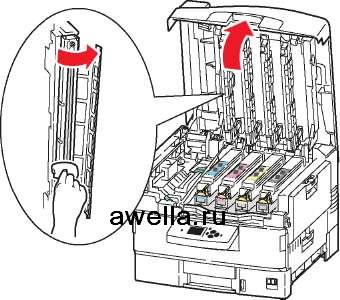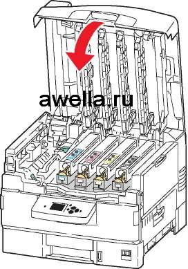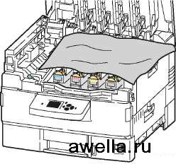 Не оставляйте верхнюю крышку открытой более чем на 10 минут, не закрыв копи-картриджи: это может вызвать повреждение. Накройте копи-картридж темным чехлом, входящим в его комплект, или непрозрачной бумагой.