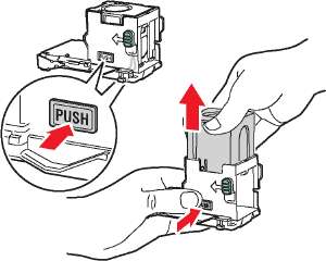5. Сожмите боковые поверхности блока степлирования (там, где написано «Push» — нажать) и выньте элемент из блока.