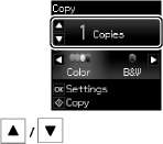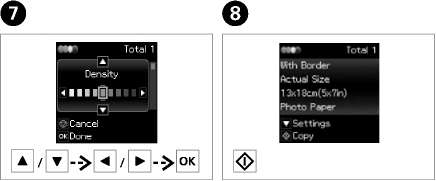 Для изменения настроек нажмите d и перейдите к шагу H. Если нужно изменить количество копий, нажмите y, чтобы открыть экран шага E, внесите изменения и нажмите x.