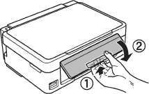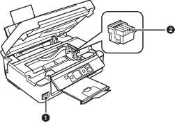 Установите картриджи. Чернила выталкиваются из дюз печатающей головки в нижней части.