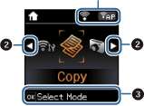 Отображаются доступные кнопки. В этом примере можно установить количество копий, нажав кнопку u или