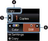 Отображаются доступные кнопки. В этом примере можно выбрать параметр Цвет или Ч/Б, нажав кнопку l