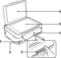 Включение и выключение устройства. Индикатор кнопки светится, когда устройство включено. Мигает при получении устройством данных, печати/копировании/ сканировании, замене, заправке чернил или очистке печатающей головки.