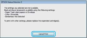 D Когда EPSON Status Monitor 3 выдаст запрос на отмену задания печати, отмените задание кнопкой Cancel (Отмена) или Cancel Print (Отмена печать).