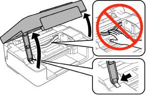 Держатель переводится в положение проверки. В отмеченном значком, закончились или уровень чернил низкий.