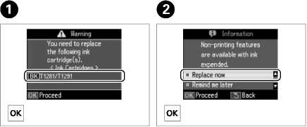 Компания рекомендует использовать оригинальные Epson. Компания Epson не может гарантировать качество и надежность других производителей. Использование других производителей может привести к повреждениям, которые не входят в гарантийные обязательства. В определенных условиях эти также могут стать причиной непредсказуемого поведения принтера. Сведения об уровнях других производителей могут не отображаться.