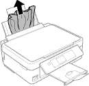 Если в заднем устройстве подачи осталась бумага, аккуратно вытяните ее.