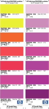 Кроме того, с помощью встроенного Web-сервера или программы HP Utility можно напечатать книгу образцов PANTONE, демонстрирующую эмуляцию цветов PANTONE так, как это бы сделал конкретный принтер. Вместе с эмуляцией цветов в эту книжку будут включены характеристики цветовых различий между каждой эмуляцией и исходным плашечным цветом PANTONE.