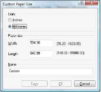 Если среди имеющихся форматов нет того, который требуется использовать, нажмите кнопку Нестандартный. Введите ширину, длину и имя нестандартного формата бумаги. Нажмите кнопки Сохранить и OK.