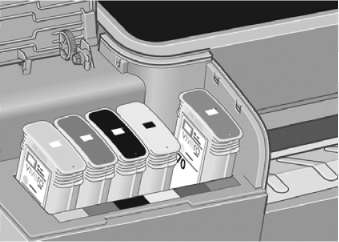 • Пуст или неисправен; для продолжения печати необходимо заменить. Не пытайтесь извлечь в процессе печати.
