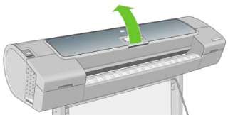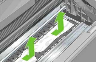 6. Стоя позади принтера, отмотайте рулон или вытяните отрезанный лист из принтера. Если бумага не видна, вернитесь к передней части принтера и удалите ее из выходного лотка.