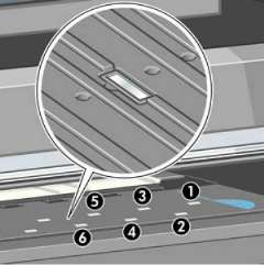 Датчик продвижения бумаги представляет собой маленькую прямоугольную крышку (площадью менее одного квадратного сантиметра, как показано на следующем рисунке), расположенную рядом с шестым справа роликом валика.
