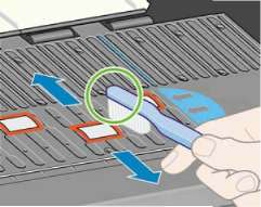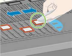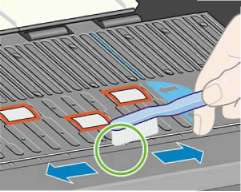 3. С помощью сухой щеточки очистите паз резака от остатков чернил.