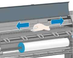 Если печать на широкой бумаге производится после печати на более узкой бумаге, может оказаться, что левая сторона валика загрязнена. Если эту загрязненную область валика не очистить, она может оставить следы на обратной стороне бумаги.