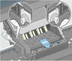 1. Чтобы получить доступ к каретке, на передней панели выберите Заменить головки. При этом каретка переместится в среднюю секцию принтера.